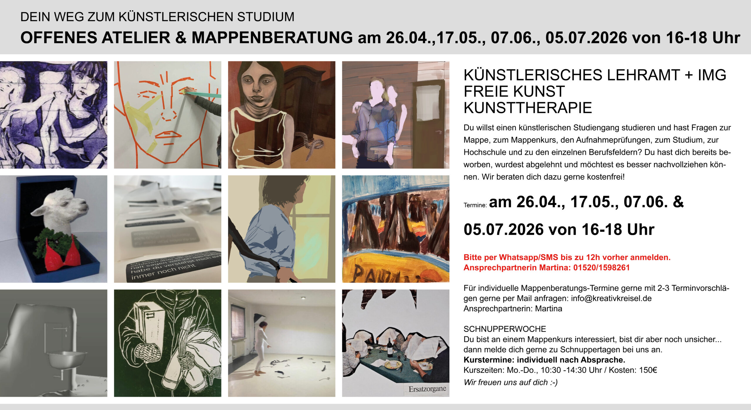 für künstlerische Studiengänge, Mappenkurse und Mappenberatungen,