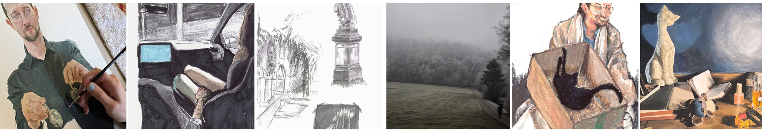 Um einen ersten Einblick in die Welt der künstlerisch-akademischen Bewerbungsportfolios sowie in unsere Arbeit – und vor allem in die unserer Kursteilnehmenden – zu geben, präsentieren wir hier eine kleine Auswahl an künstlerischen Arbeiten, welche aus erfolgreichen Mappen entspringen. Die Beispiele stammen von ehemaligen Teilnehmerinnen und Teilnehmern, die unser Vorstudium erfolgreich abgeschlossen und neben dem Erhalt ihres Wunsch-Studienplatzes, an mehreren Akademien erfolgreich waren. Die meisten von ihnen hatten zu Beginn nur wenig oder sogar gar keine künstlerische Erfahrung. Lediglich der Wunsch ein künstlerisches Studium zu absolvieren war da. Sie alle waren bereit in einen tiefen Prozess einzutauchen. Im Laufe des Vollzeit-Kurses entwickelten jedoch alle eine beeindruckende individuelle und künstlerische Reife. Sie entfalteten ihr volles Potenzial in Bezug auf Techniken, Motive, Medien und Gestaltungsprinzipien. Besonderen Wert legen wir darauf, jede und jeden individuell zu begleiten – mit dem Ziel, den ganz eigenen künstlerischen Ausdruck und eine persönliche Arbeitsweise zu finden. So gleicht keine Mappe der anderen und die authentische Verbindung von Mensch sowie seinem individuellen schöpferischen Tun, ist gelungen.
